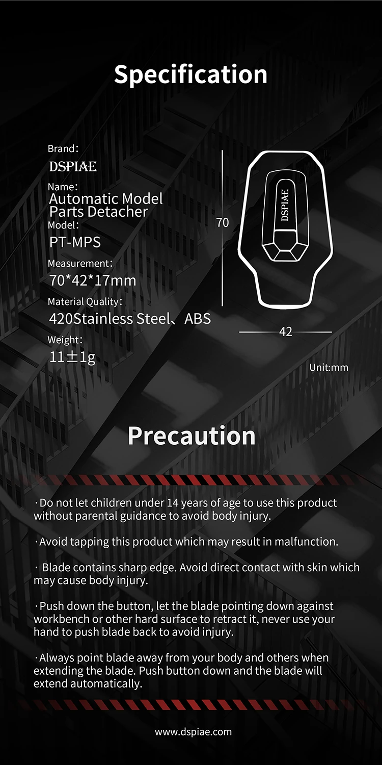 DSPIAE PT-MPS Automatic Model Parts Detacher is a compact snap-fit disassembly tool designed to help you safely separate tight plug-in parts and assemblies—especially common on Gunpla and other glue-free model kits. It’s ideal for correcting misaligned assemblies, removing unwanted parts, and taking kits apart for repainting or customization with less risk of stress marks or broken tabs.
