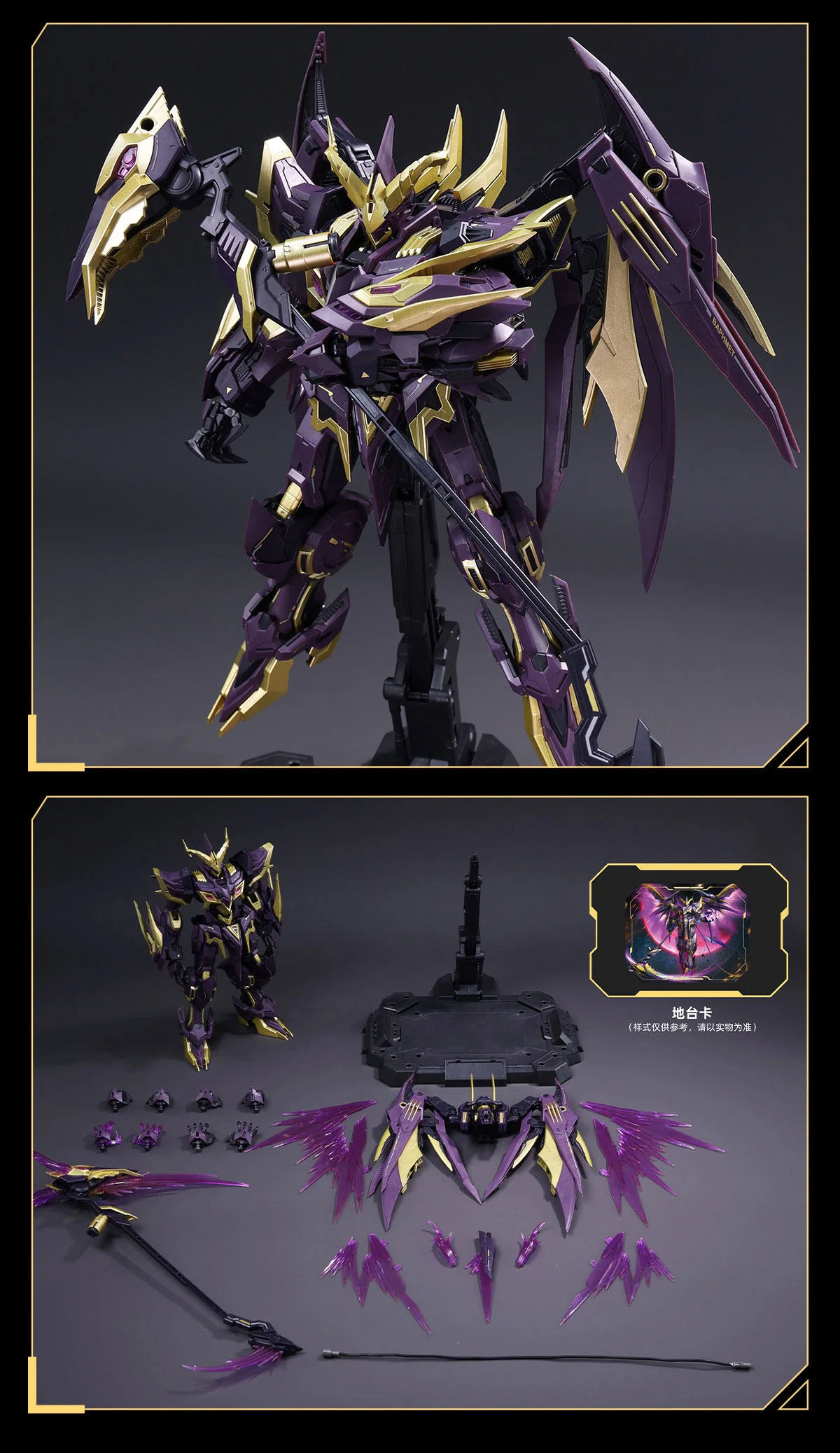 Cang-Toys War of the God – Baphomet Demon Phantom (Deluxe Edition) is the dark counterpart to the Holy Light & Shadow version, presenting Baphomet as a true demon messenger in a rich gold and deep purple colour scheme. Standing at about 20 cm tall, this Starry Sky Class model kit is fully articulated once assembled, allowing for aggressive beast-like poses or imposing upright stances in your display.
